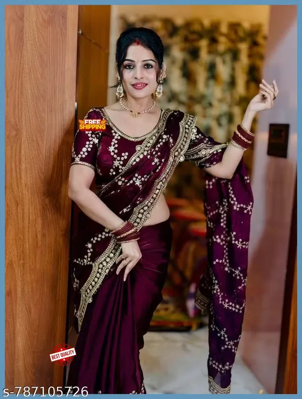 Premium Women S Partywear Designer Saree Beautiful Florel Design Saree With..More